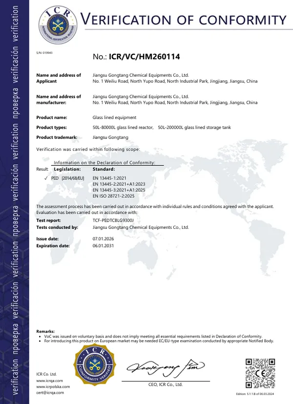 태저우 유리라이닝 반응기 산업 디자인 센터