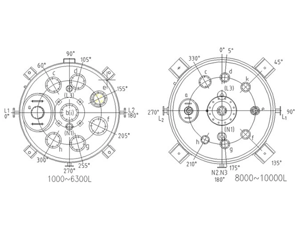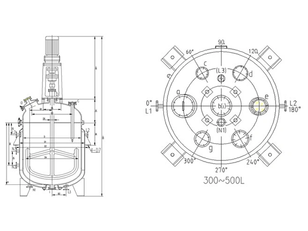 오픈형 유리 라이닝 반응기 치수 (mm)