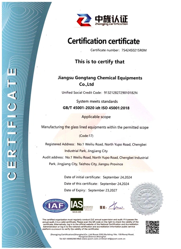 태저우 유리라이닝 반응기 산업 디자인 센터